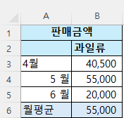 예를 들어 이렇게 4월~6월까지의 판매 금액이 있습니다